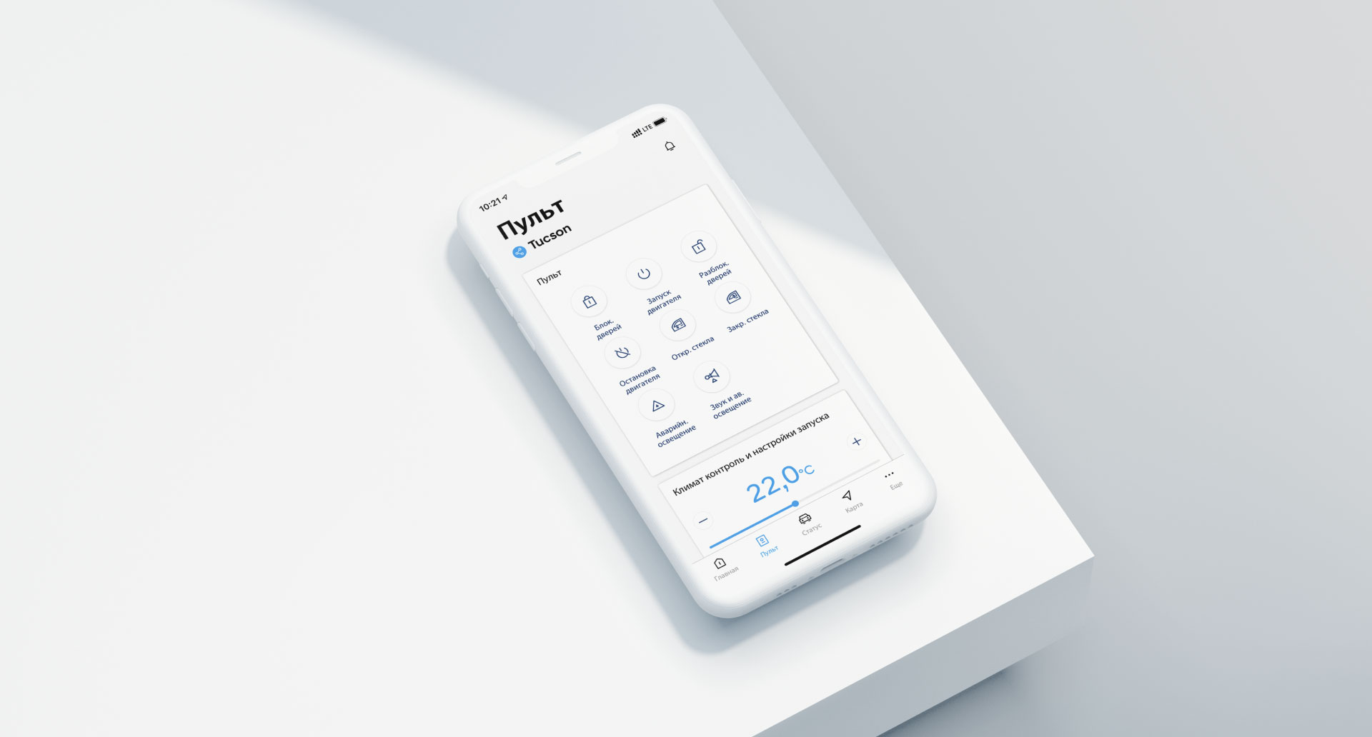 Возможность при дистанционном запуске двигателя задать требуемую температуру для прогрева или охлаждения салона, а также управление подогревом или вентиляцией сидений по отдельности, подогревом руля, боковых зеркал, лобового и заднего стекол в разное время года (в зависимости от комплектации, в приложении будет доступен соответствующий набор функций).